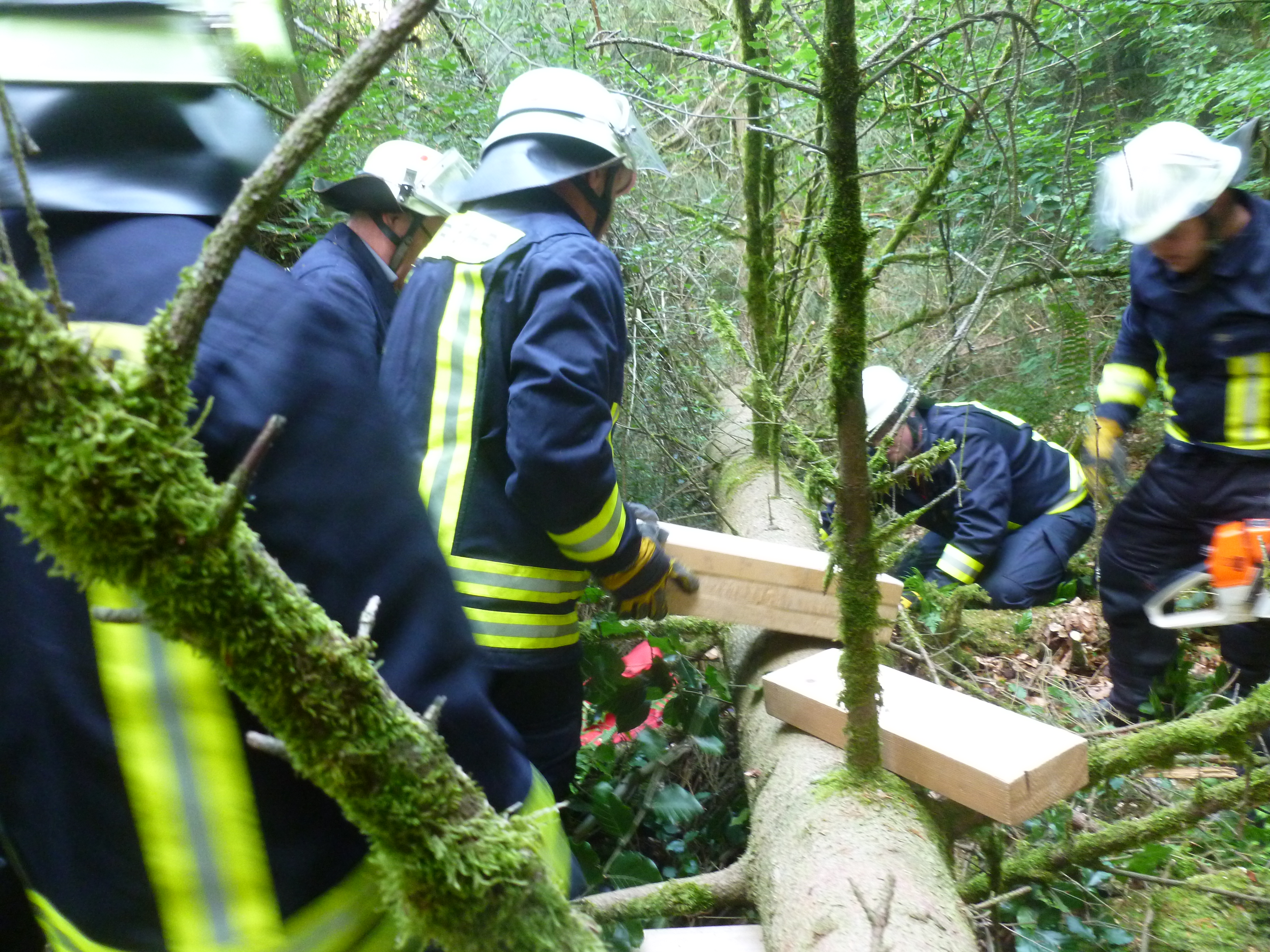 Übungsabend: Eingeklemmte Person unter Baum.