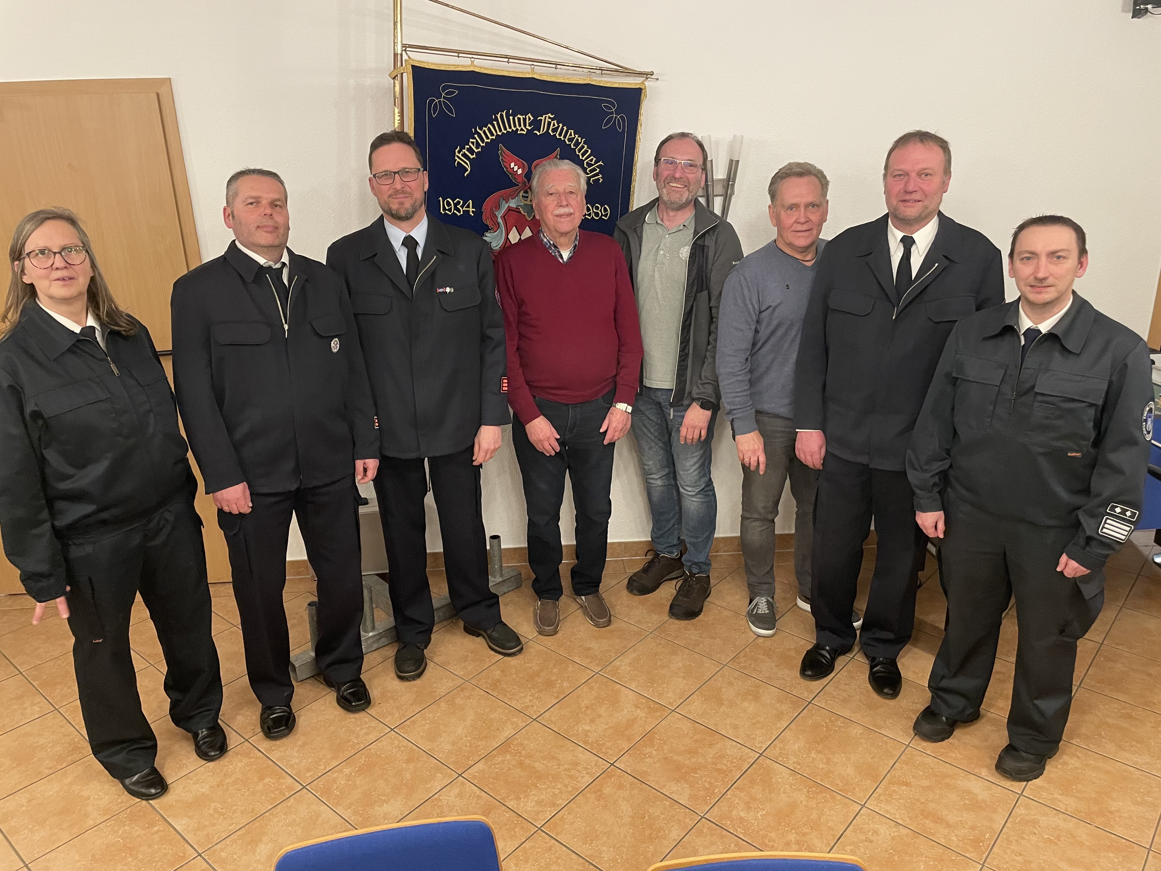 Von links: Vereinsvorsitzender Pierre Nadler, Roland Nadler, Manfred Fröhlich, Reiner Metz und Wehrführer Achim Helmke.