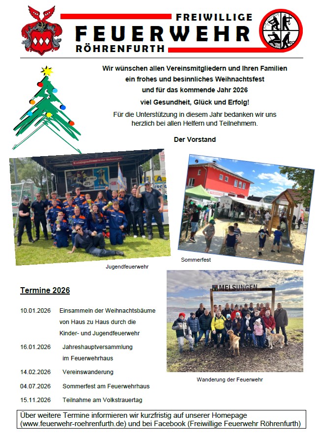 - Die Jugendfeuerwehr trifft sich jeden Dienstag um 18 Uhr im Feuerwehrgerätehaus. Bei Interesse einfach vorbei kommen oder über Email Kontakt aufnehmen.