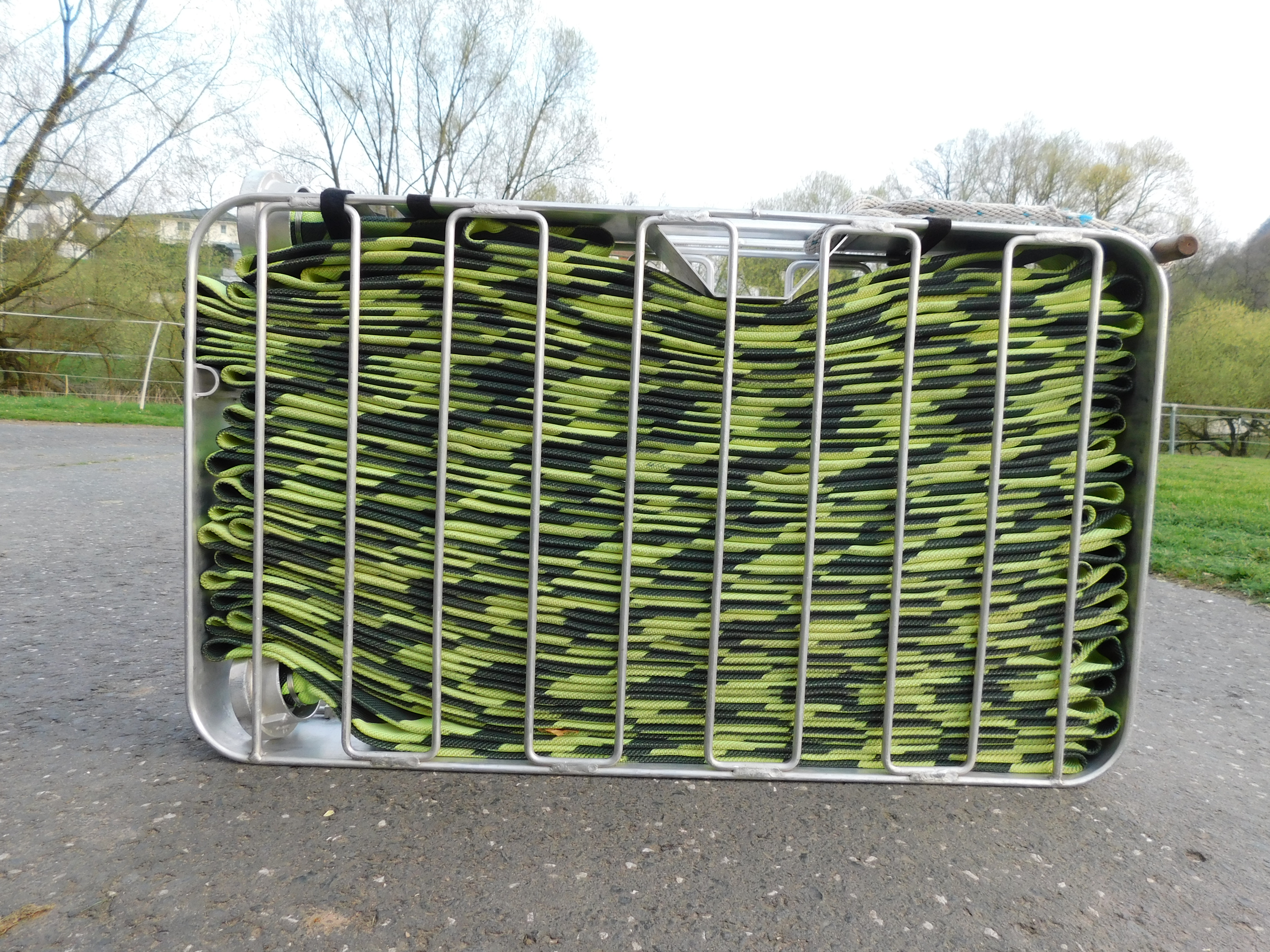 Unser Haupteinsatzfahrzeug ist ein LF 10 Kat/S der Fa. Ziegler. Das Fahrzeug wurde uns im April 2014 übergeben. Es baut auf einem Mercedes Atego 12.22 Allradfahrgestell auf und verfügt über Normbeladung. Die fest eingebaute Feuerlöschkreiselpumpe hat eine Nennleistung von 2000 Litern je Minute bei einem Druck von 10 bar. Für Verkehrsunfälle steht ein Weber Hydrauliksatz mit Schere und Spreizer zur Verfügung. Als Besonderheit sind zwei Schlauchtragekörbe mit 45 Meter sondergefertigten C42 Schläuchen verlastet. Diese erleichtern den Weg bei einem Innenangriff durch ein Treppenhaus erheblich.