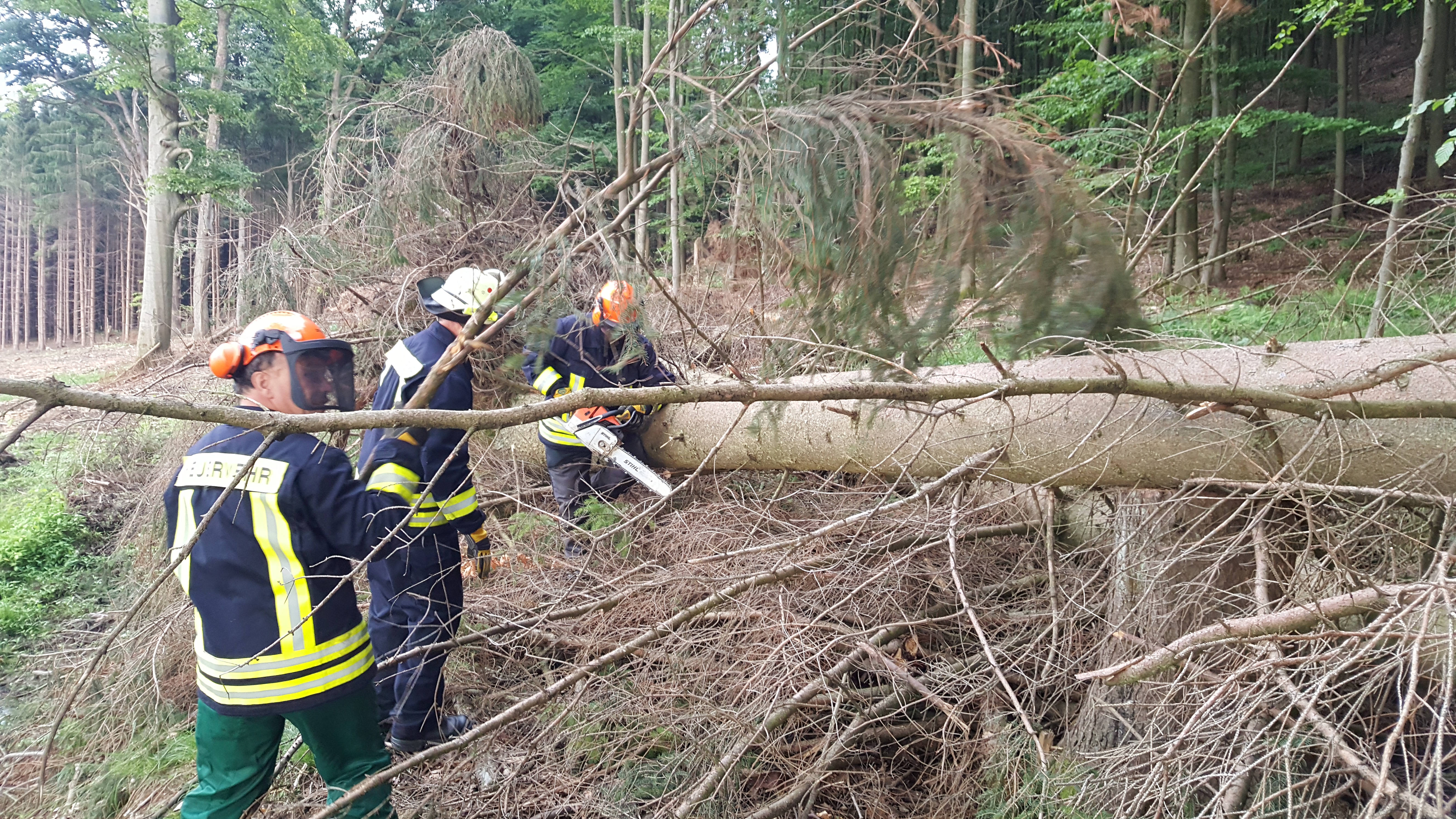 Wir konnten an einigen Bäumen den Einsatz der Motorkettensäge üben.